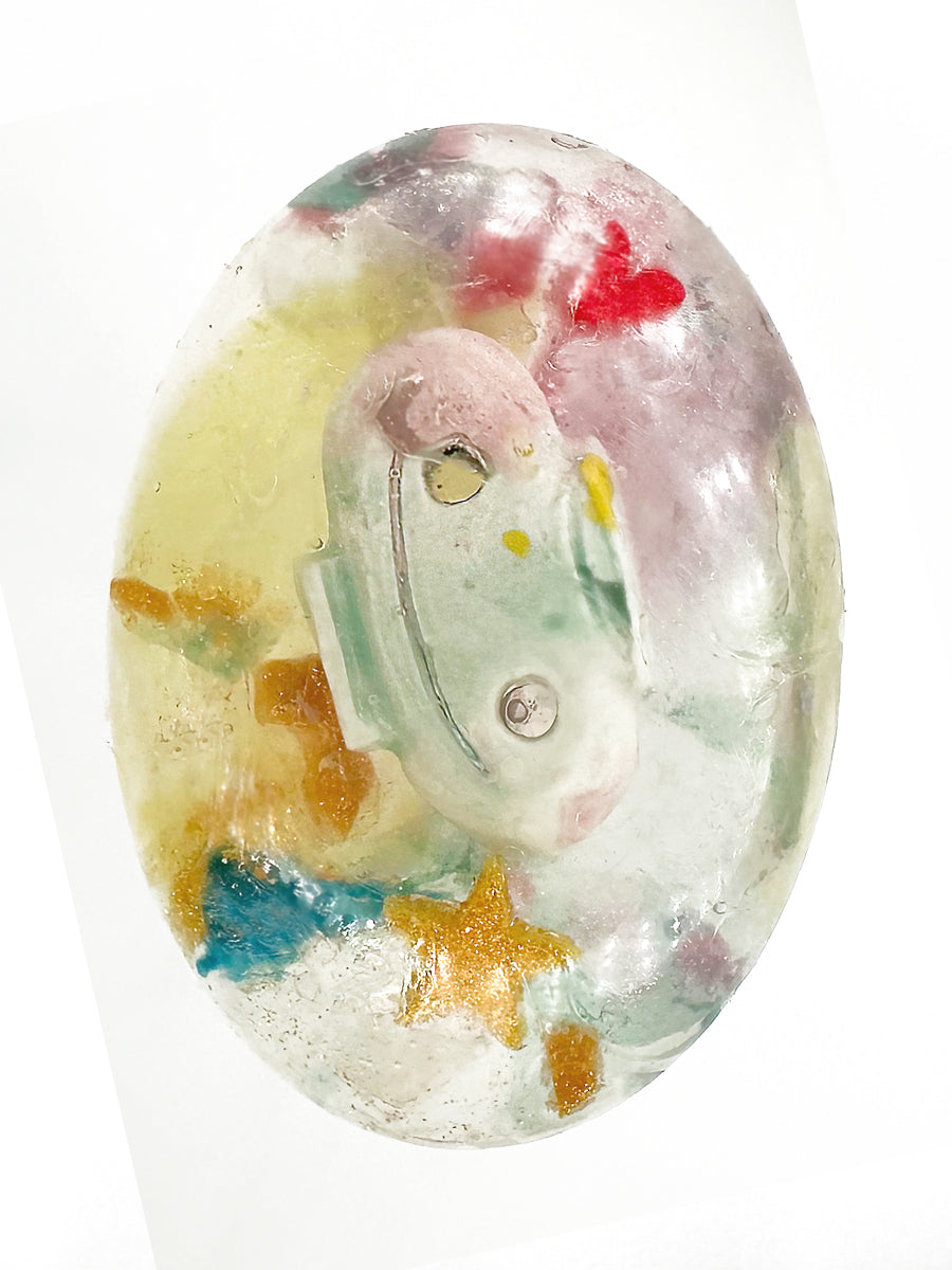 Each soap is made with a unique, handcrafted ceramic piece, offering a small token of care and memory. This idea comes from my childhood with my mother. She once bought me a bar of soap with a little toy inside. I was so eager to get the toy that I tried to break the soap open. Instead, she told me that I had to use the soap to wash and wait until the toy slowly appeared. The memory of that patience, playfulness, and her gentle words inspired me to create these soaps.