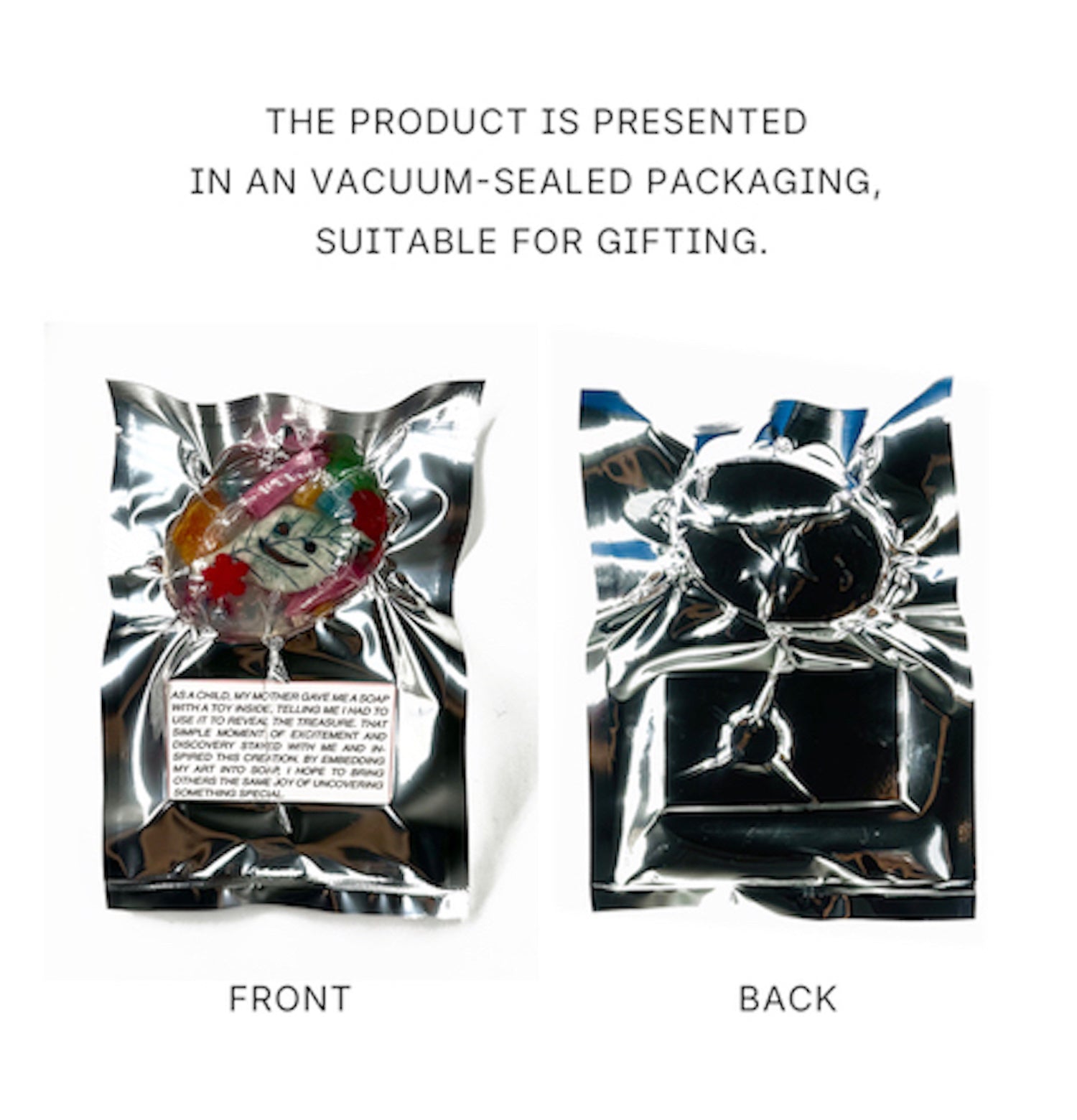Each soap is made with a unique, handcrafted ceramic piece, offering a small token of care and memory. This idea comes from my childhood with my mother. She once bought me a bar of soap with a little toy inside. I was so eager to get the toy that I tried to break the soap open. Instead, she told me that I had to use the soap to wash and wait until the toy slowly appeared. The memory of that patience, playfulness, and her gentle words inspired me to create these soaps.