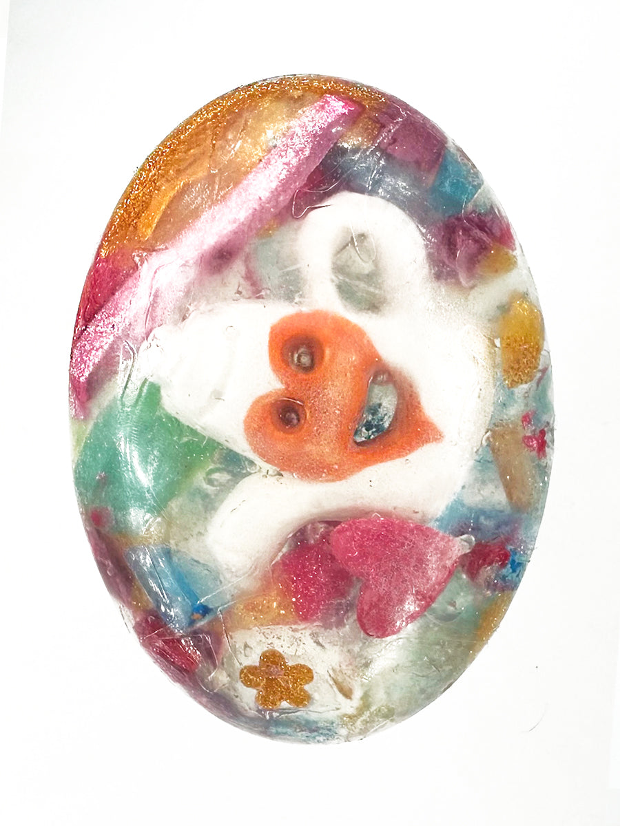 Special add : comes with a signed card sharing my inspiration and the ingredients I used. It also comes with metal jump rings to use after the soap.